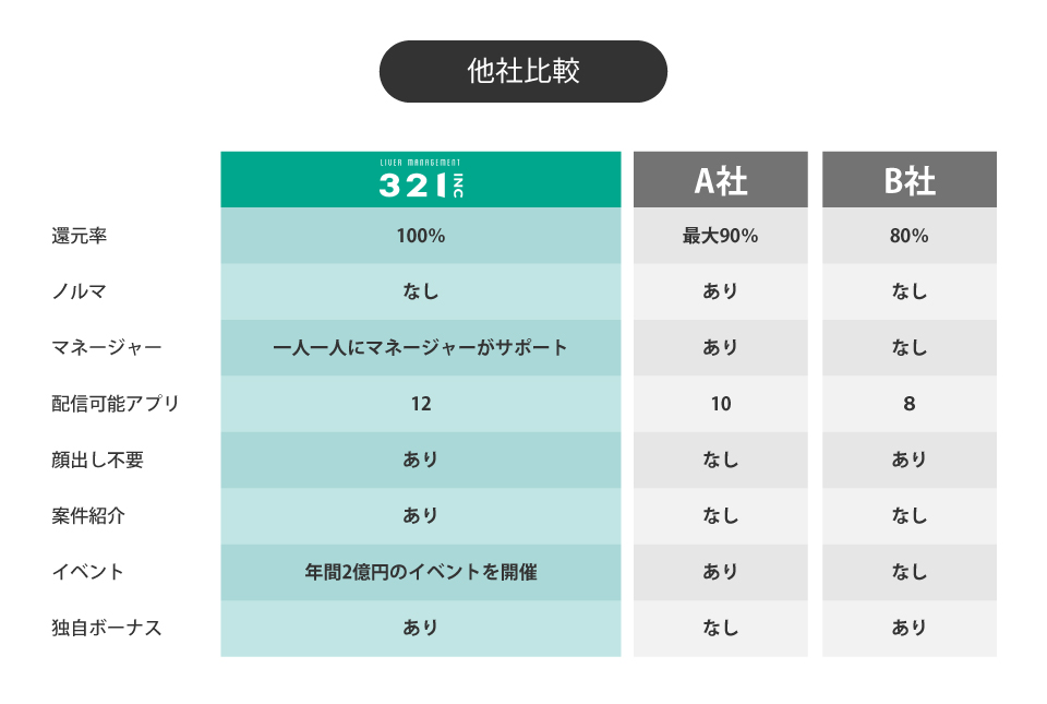 ライバーとして活動いただきます。